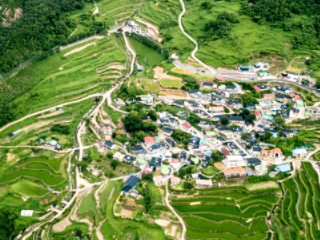 45도 경사 비탈에 108개 층층 계단 680여 개의 논이 펼쳐져 있는 다랑이논. 이 다랑이는 산골짜기의 비탈진 곳 계단식의 좁고 긴 논배미란 뜻인데 어서 오시다라는 구수한 남해 사투리로는 다랭이라고 부른다. 우리네 어버이들이 농토를 한 뼘이라도 더 넓히려고 산비탈을 깎아 곧추 석축을 쌓아 계단식 다랭이논을 만든 까닭에 아직도 소와 쟁기가 필수인 마을이 바로 다랭이마을이다.