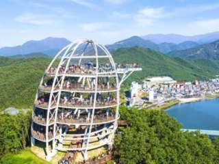 9월 단양 가볼만한곳 베스트 10 네 번째! 만학천봉전망대는 원형으로 만들어져 소백산과 금수산 그리고 월악산 등 백두대간 명산들을 동서남북의 사면으로 감상할 수 있으며, 남한강 수면 위 약 80m 높이에 전망대 맞은편 남한강을 향하여 삼지창 모양으로 삐져나와 있는 하늘길에 올라서고 나면 남한강의 절경이 한눈에 들어오고 마치 구름 위를 걷는 듯한 아찔함을 경험해볼 수 있다.
