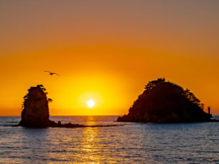 가을 안면도 가볼만한곳 베스트 10 다섯 번째! 충남 태안군 안면읍 광지길에 위치한 꽃지해변은 5km에 이르는 백사장과 할배바위 그리고 할매바위가 어우러져 그림과 같은 풍광을 보여준다. 2개의 바위 너머로 붉게 물이 드는 낙조는 태안을 상징하는 아름다운 풍광 가운데 으뜸으로 꼽힌다. 예부터 백사장을 따라 해당화가 지천으로 피어나서 ‘꽃지’라는 어여쁜 이름을 얻었다.
