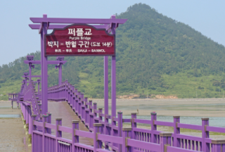 전남 섬여행지 추천 베스트 두 번째! 박지도와 반월도는 섬 속의 섬으로 라일락과 함께 보라색 정원으로 꽃향기가 피어나는 섬이다. 두 개의 섬이 나무다리로 연결되어 있는데 높은 데서 봤을 때 두 개의 다리가 브이(V)자 모양으로 되어있는 두다리는 안좌도 본섬에서 박지도로, 박지도에서 반월도 잇고 있다. 반월도는 섬의 형태가 사방 어느 곳에서 보더라도 반달모양으로 보이기 때문에 반월도라 부르게 되었다.