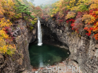 경기도 가을 단풍 좋은 곳 베스트 여덟 번째! 재인폭포는 연천의 가장 대표적인 명소중 하나로 한탄강 지형이 빚은 절경이다. 연천7경중 으뜸가는 경관을 가지고 있으며 다이아몬드처럼 부서지는 하얀 물살과 그 아래 에메랄드빛으로 펼쳐진 소(沼)는 보는 순간 마음을 사로잡아 쉽게 잊혀지지 않는다.