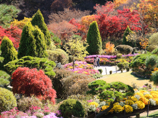 경기도 가을 단풍 좋은 곳 베스트 일곱 번째! 아침고요수목원은 축령산의 빼어난 자연경관을 배경으로 하여 한국의 미를 듬뿍 담은 정원들을 원예학적으로 조화시켜 설계한 원예수목원이다. 여러 가지 특색 있는 정원을 갖추고 있고, 울창한 잣나무숲 아래에서 삼림욕을 즐길 수도 있어 도시민들에게 쉼터를 제공한다.