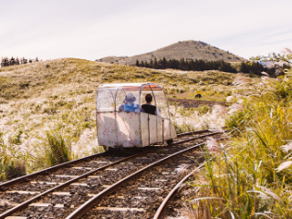 제주도 아이들과 가볼만한곳 첫 번째! 제주레일바이크는 바퀴가 4개 달린 자전거를 타고 철로를 달리며, 경관을 즐기는 레저관광 중 하나이다. 구좌읍 주변의 오름과 우도, 성산일출봉 등을 조망할 수 있을 뿐 아니라, 목장이 함께 운영되고 있어 방목된 100여 마리의 소를 감상할 수 있다. 매시간 정시부터 30분 사이에 운행하며 트레일 완주는 약 35분 정도 소요된다. 직접 페달을 움직이지 않고, 전기모터를 이용하여 자동으로 앞으로 나아가는 형식이기 때문에 힘들이지 않고 탈 수 있다.