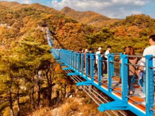 10월 강원도 여행 갈만한 곳 아홉 번째! 원주의 대표적 관광 콘텐츠인 소금산 출렁다리는 길이 200m, 높이100m, 폭 1.5m로 산악 보도교 중 국내 최장, 최고의 규모이다. 공중에서 느끼는 아찔함은 원주의 대표적인 관광지로 부족함이 없다. 출렁다리가 있는 소금산 암벽 봉우리 스카이워크 전망대에서는 섬강의 빼어난 풍광을 감상할 수 있다.