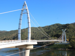 전남 곡성 가볼만한곳 베스트 10 네 번째! 대황강출렁다리는 대황강을 가로질러 죽곡면 태평리와 목사동면 구룡리를 연결하는 185m 길이의 인도교로 국내하천에 설치된 최장거리 다리이다. 그동안 접근이 불편했던 강건너편 7km가량의 트레킹 코스가 출렁다리와 연결되면서 대황강의 빼어난 경관을 한 눈에 감상할 수 있고, 안전하면서도 사람이 지나가면 위아래로 30cm 가량 출렁이기 때문에 출렁다리를 건너는 스릴이 있어 이곳을 찾는 이들에게 즐거움을 안겨준다. 트레킹코스는 소나무숲길, 대나무 숲길, 삼나무숲길로 구성되어 있다.