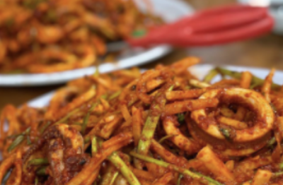 여로집은 영동포 시장 먹자골목에서 40년이 넘는 전통을 자랑하는 곳이다. 대표 메뉴는 불그스름한 양념에 오징어, 무채, 미나리를 조물조물 버무려 제공하는 오징어 초무침. 고춧가루와 마늘로만 맵기를 조절하여 깔끔한 매콤함을 선사한다. 먹을수록 입안이 얼얼해질 정도로 퍼져가는 매운맛을 시원한 동치미 국물로 잡아줘도 좋다.