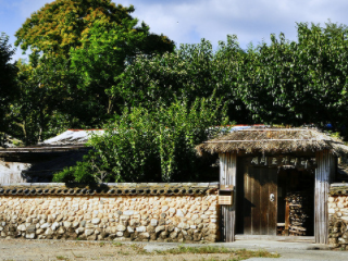 하동 가볼만한곳 베스트 10 세 번째! 평사리 논길을 따라서 들어가면 들판의 가운데에 소나무 두 그루가 우뚝 선 채로 정겹게 맞이하며 지리산 자락엔 초가들이 한 폭의 그림처럼 펼쳐진다. 그 중턱에 고래등과 같은 기와집은 소설 토지의 배경이 된 최참판댁이다. 사랑채 대청마루에 올라앉아서 보면 평사리 넓은 들판이 한눈에 들어온다.